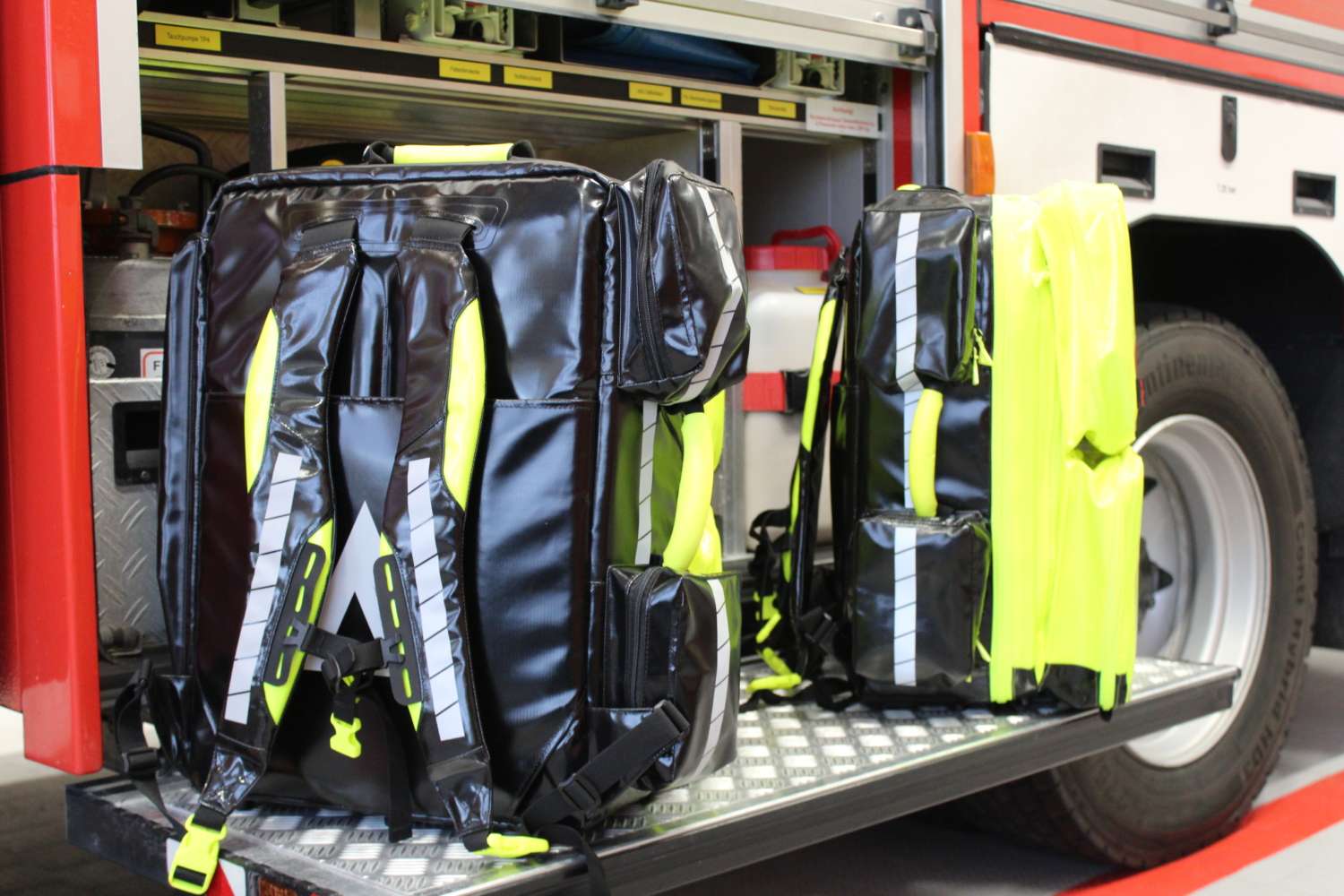 Im Rahmen der Jahresbeschaffung 2023 konnten zwei neue erweiterte Notfallrucksäcke der Firma Pax auf dem Hilfeleistungslöschgruppenfahrzeug und dem Mehrzweckfahrzeug in den Einsatzdienst übernommen werden.