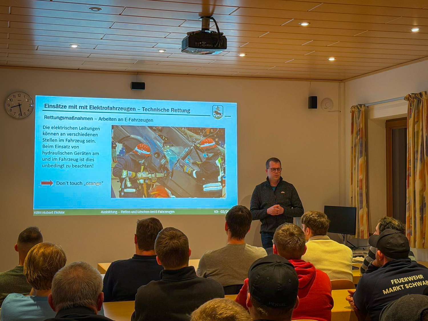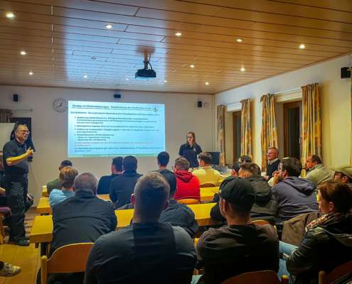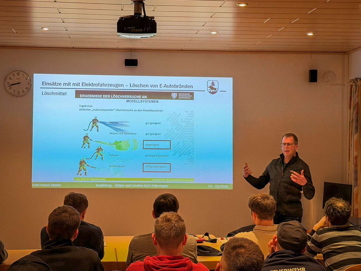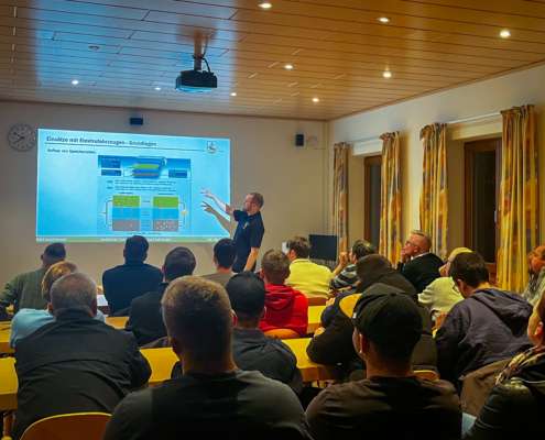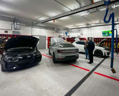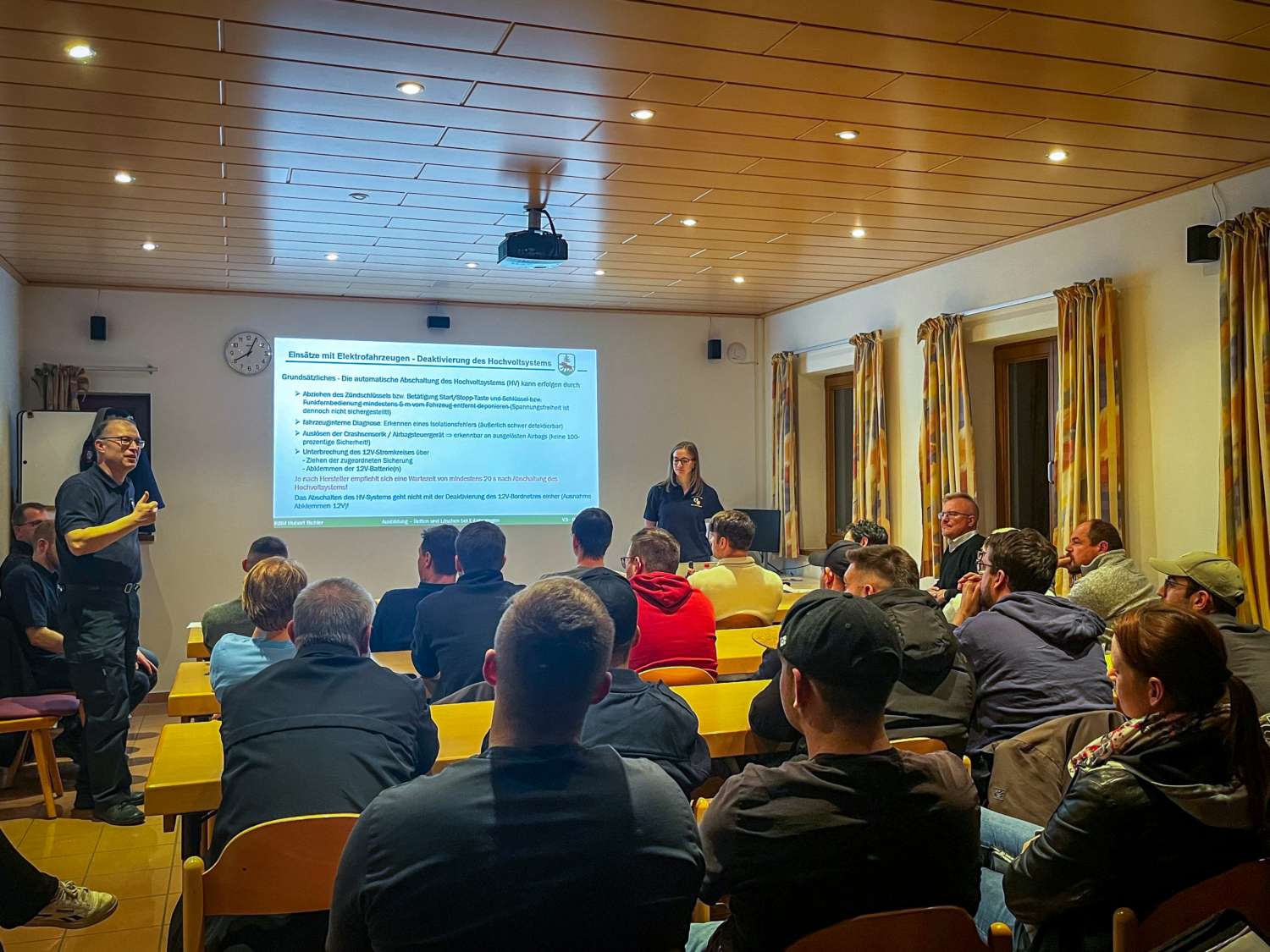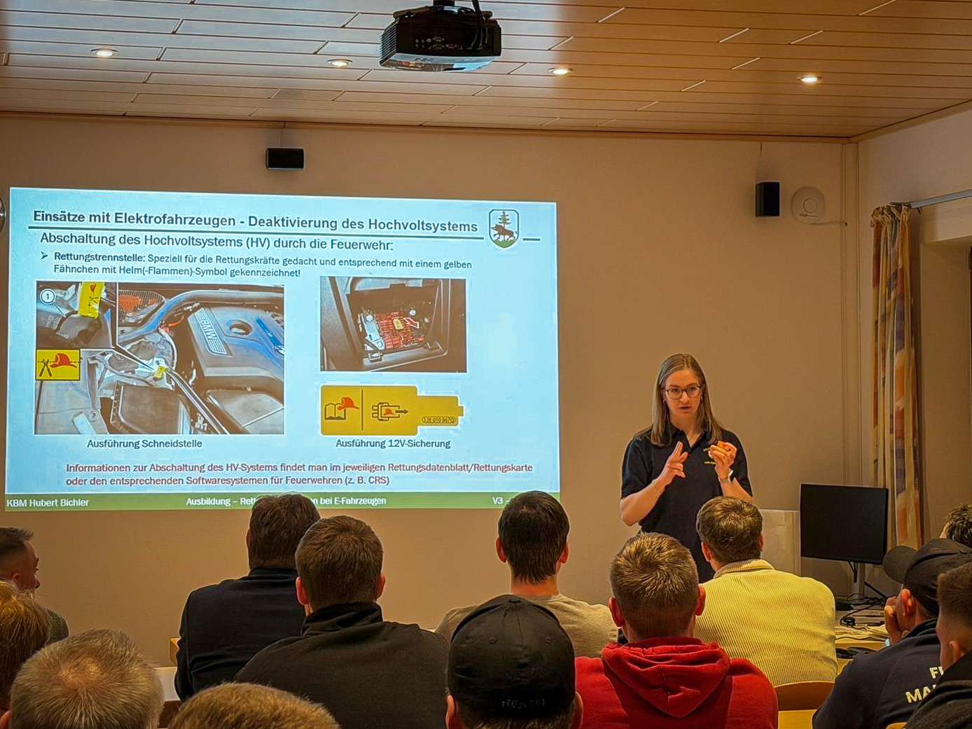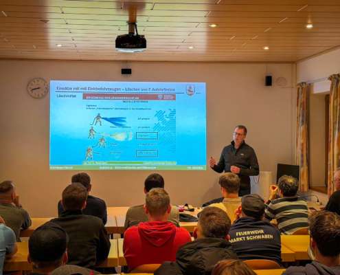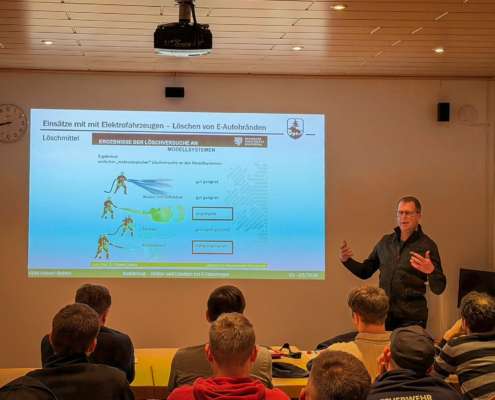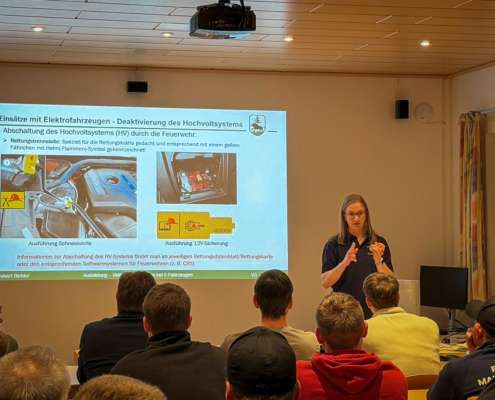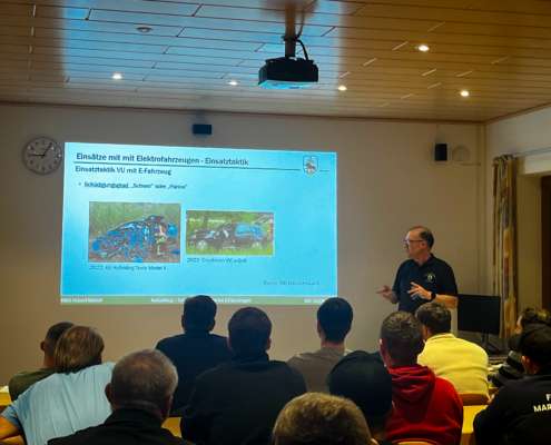 Neben dem grundlegenden Aufbau von Elektrofahrzeugen standen insbesondere das einsatztaktische Vorgehen sowie die Deaktivierung von Hochvoltsystemen im Fokus. Ergänzt wurde der Lehrgang durch weitere wichtige Themen, die den Einsatzkräften mehr Handlungssicherheit und Vertrautheit im Umgang mit E-Fahrzeugen vermitteln sollen.