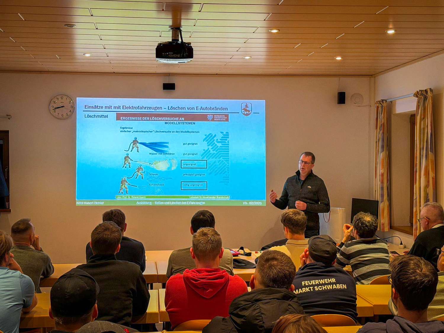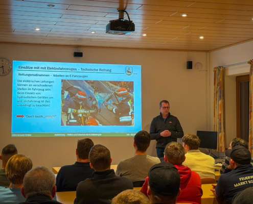 Am Abend des 19.03.2026 fand erstmals der Pilotlehrgang „E-Mobilität“ der Kreisbrandinspektion Ebersberg im Gerätehaus der Feuerwehr Gelting statt. Alternative Antriebe sind aus der Automobilbranche nicht mehr wegzudenken – umso wichtiger ist es, die Feuerwehren bestmöglich auf Einsätze mit diesen Fahrzeugen vorzubereiten.
