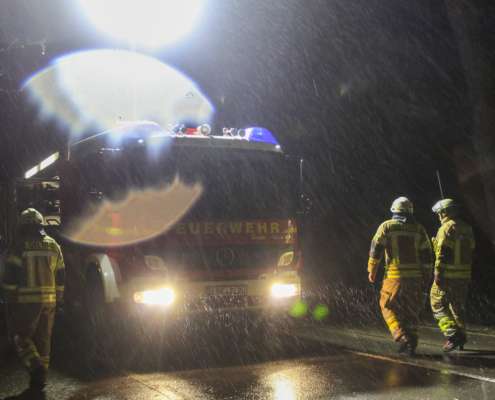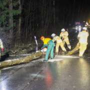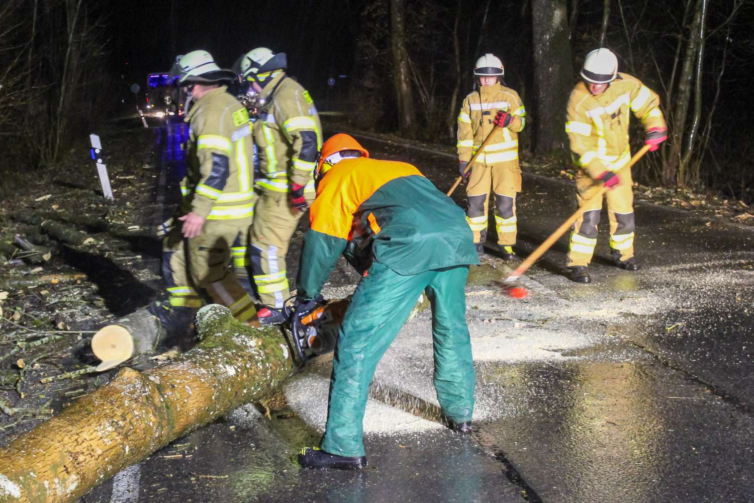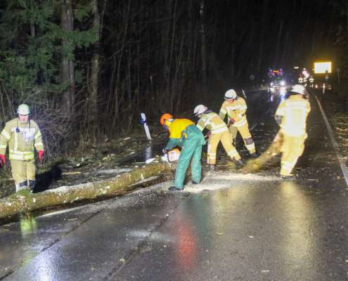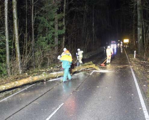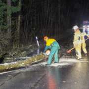 In der Nacht von Donnerstag auf Freitag wurde die Feuerwehr Gelting erneut auf die Markt Schwabener Straße gerufen. Im Waldstück zwischen Gelting und der Flughafentangente Ost stürzte ein größer Baum auf die Fahrbahn und blockierte diese vollständig.