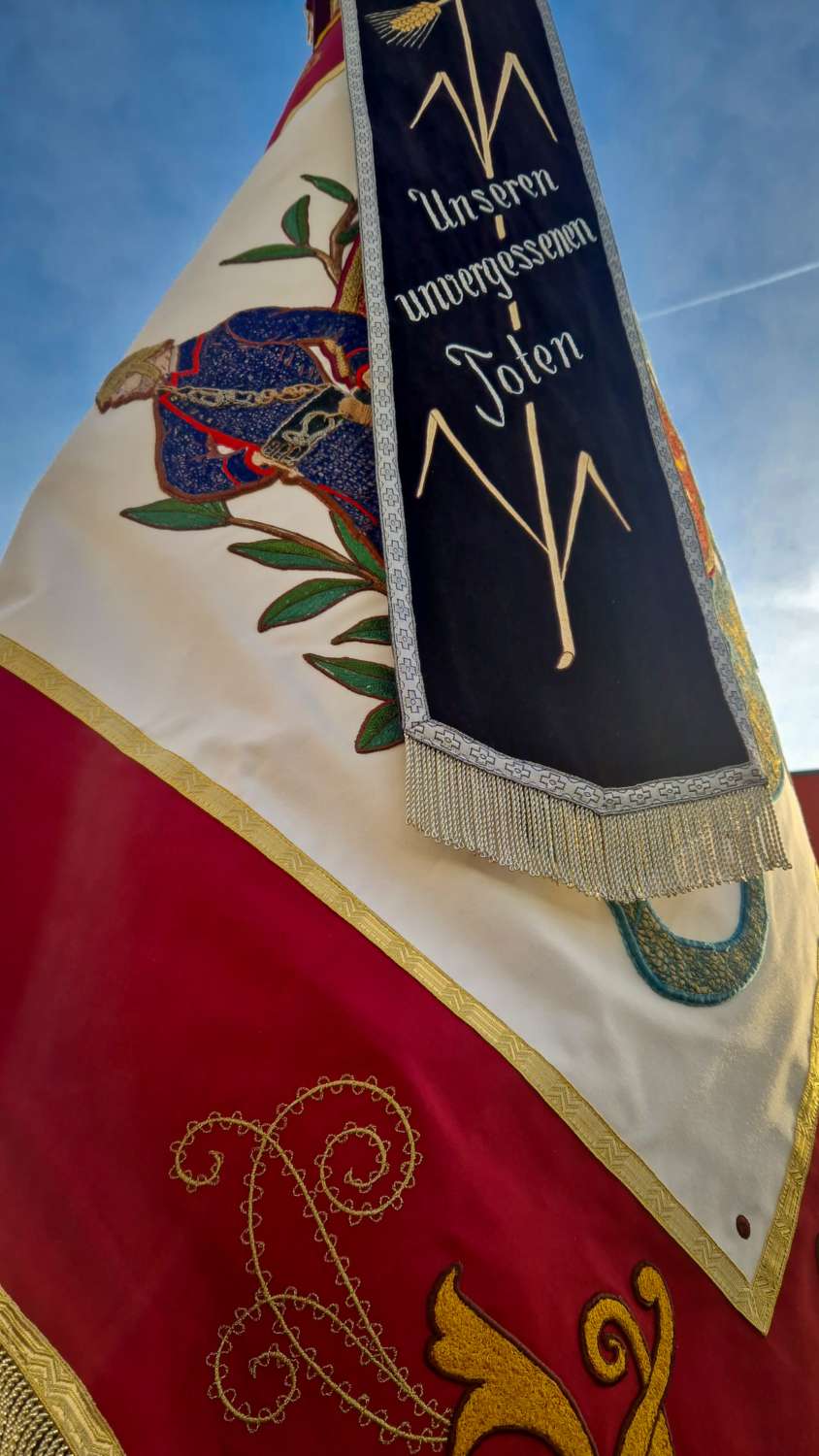 Während des Zugs zum Gottesdienst vom Bürgerhaus zur Kirche in Gelting sowie während der Kranzniederlegung am Kriegerdenkmal und dem Zug zurück zum Bürgerhaus wurde die Markt Schwabener Straße durch das Hilfeleistungslöschgruppenfahrzeug und das Mehrzweckfahrzeug und diverse Fußposten abgesperrt.